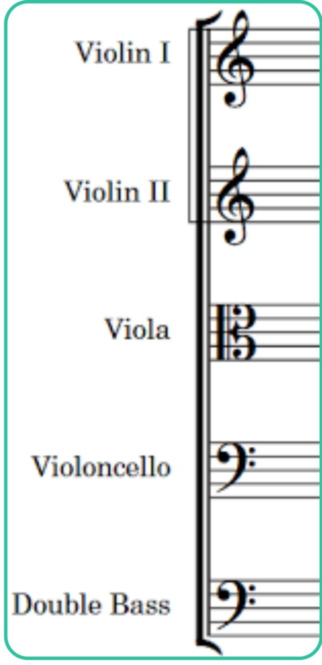 A bracket in music groups multiple instrumental parts together into sections. This symbol can often be seen in choral or orchestral music.